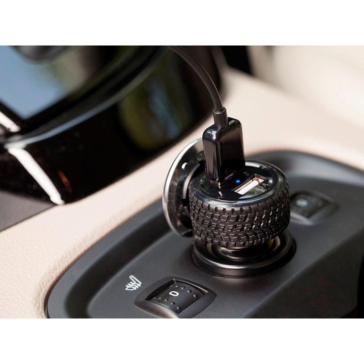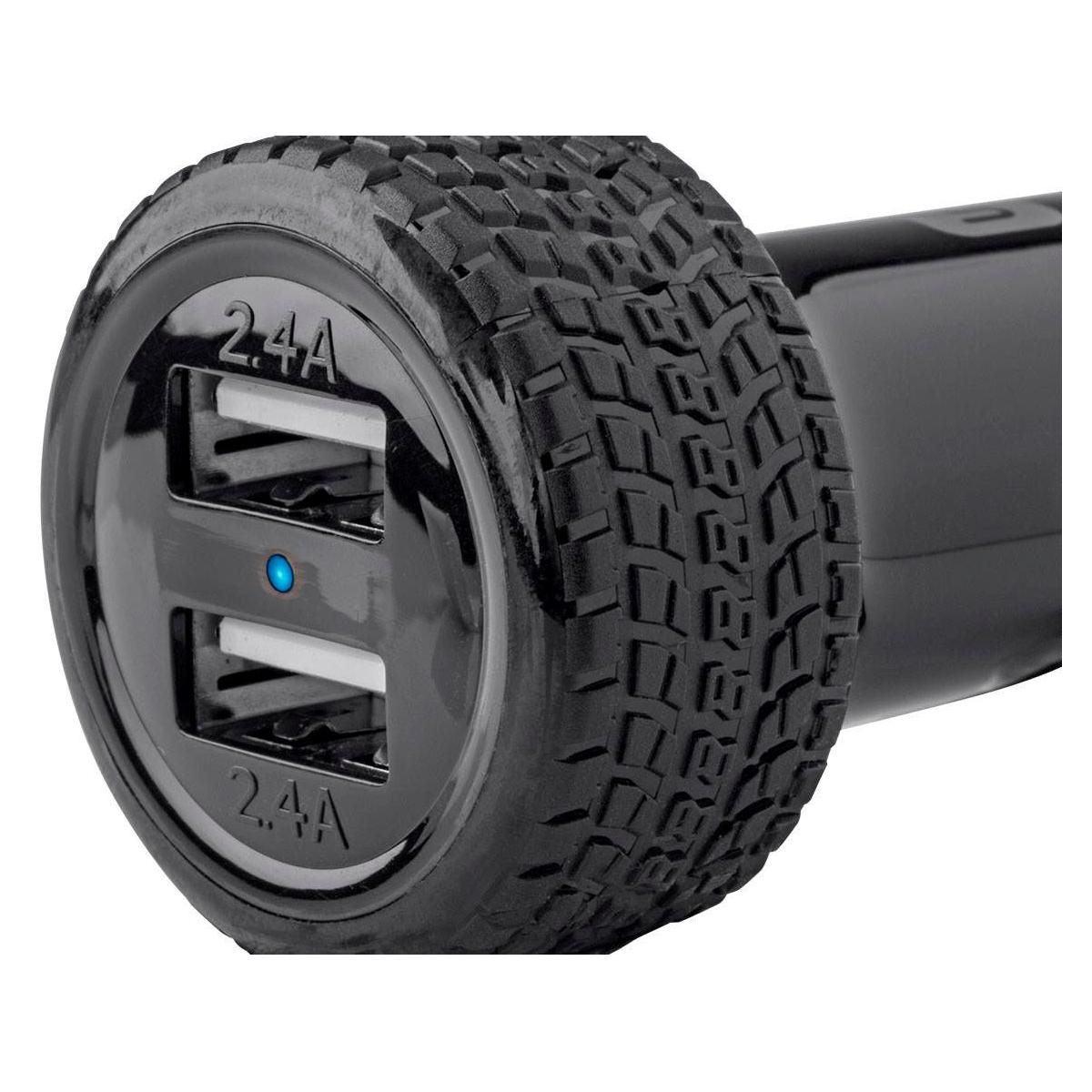 Charge up to two Apple iPads at full speed in your vehicle using this 2-port USB Car Charger from Monoprice! This USB 2.0 car charger features two USB ports and a maximum current capacity of 4.8 amps! The 2.4 amps per port combines with the spacial internal circuitry to allow Apple and Samsung devices to be charged at their full charge rates. The charger measures 1.1" x 1.1" x 2.4" (29 x 29 x 60 mm).