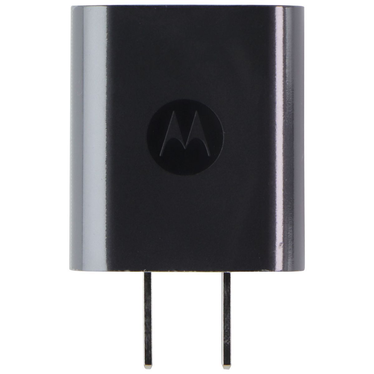 Motorola single-port wall charger delivers 5V/1A power for USB devices in a compact, travel-friendly black design.
