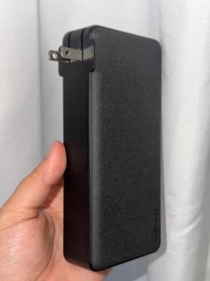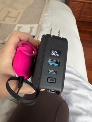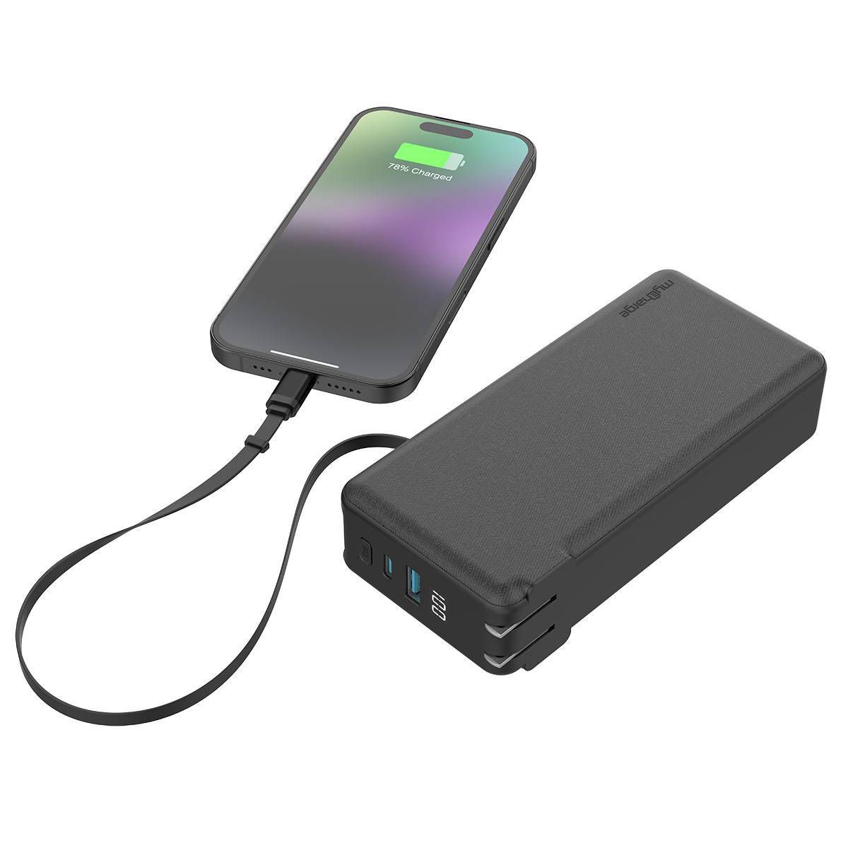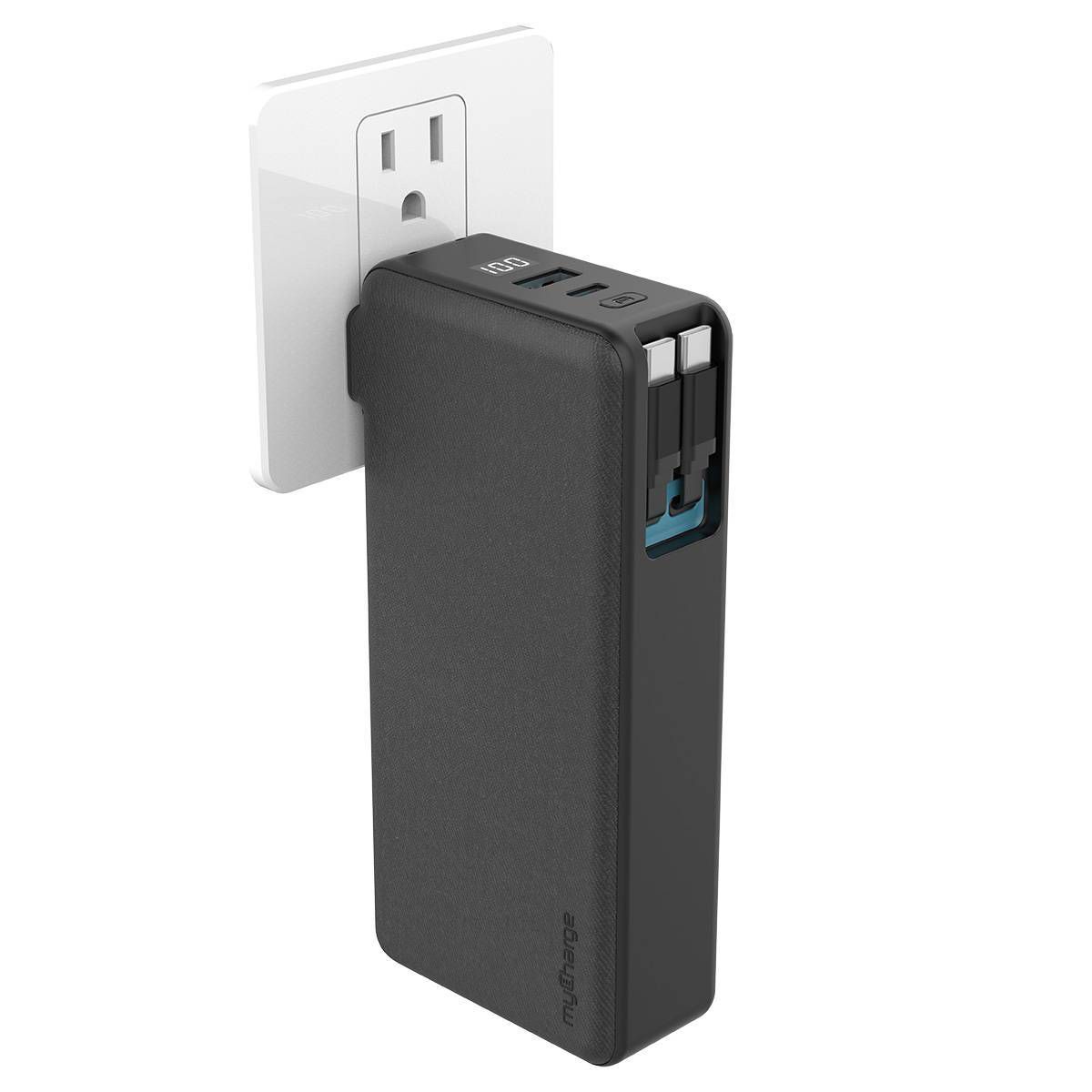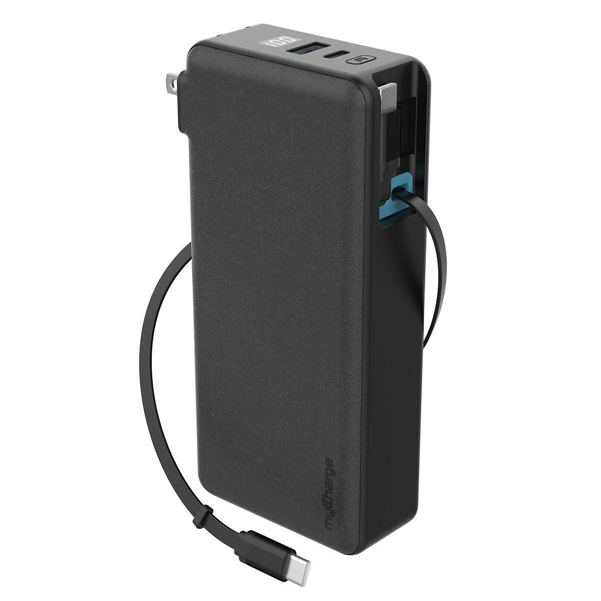 myCharge 20000mAh 67W RetractaCharger + Power Bank with Two Buit-in Retractable USB-C Cables and Wall Plug - Black