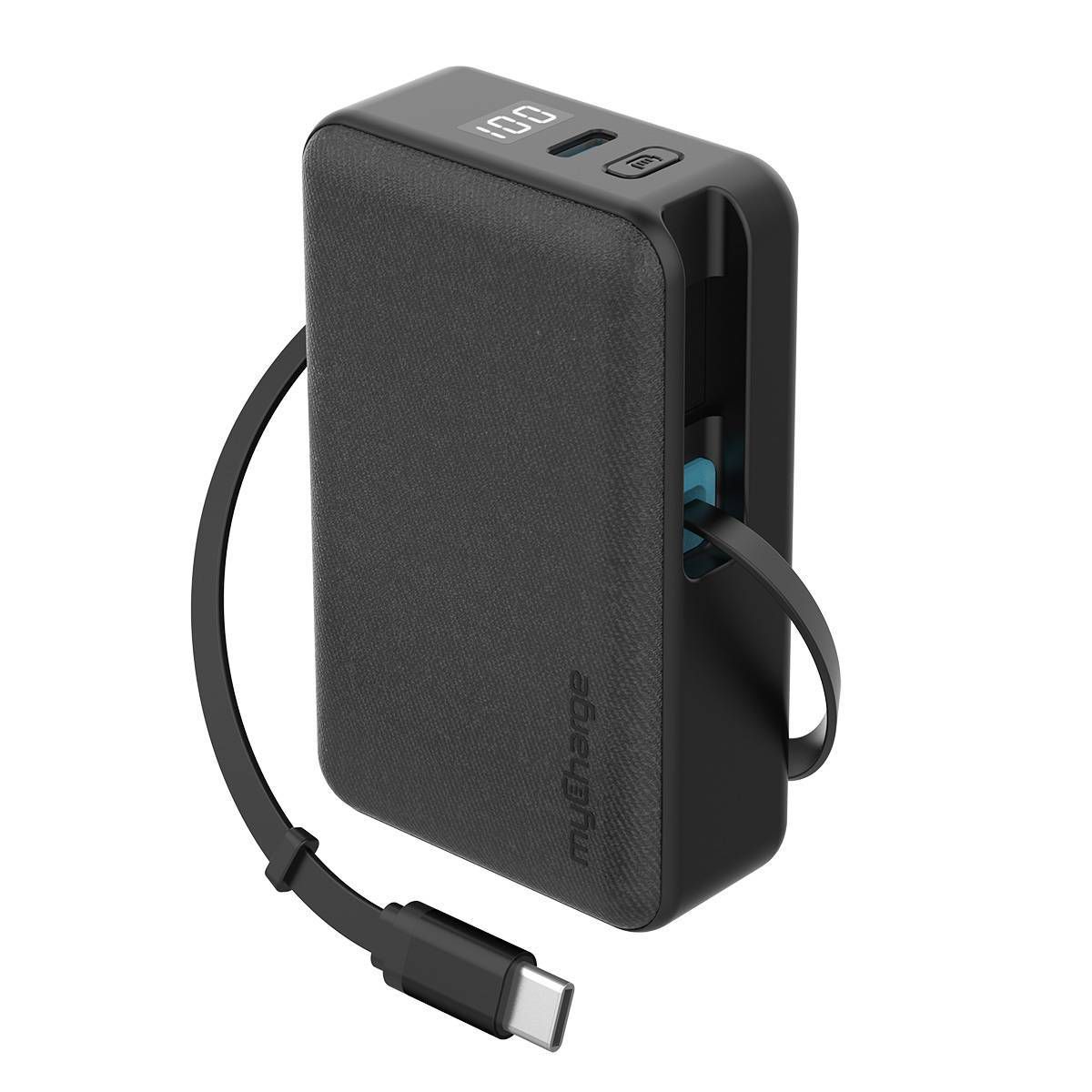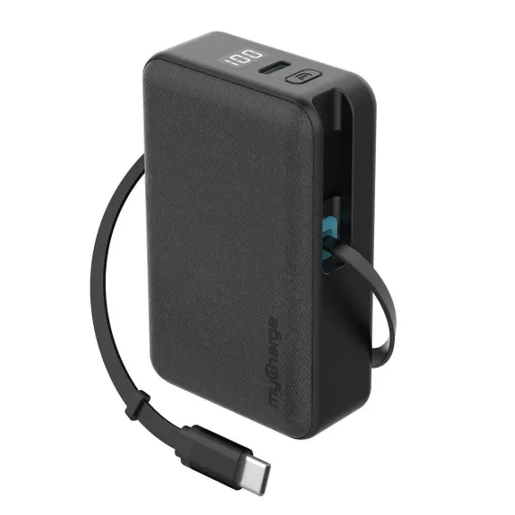 myCharge 5000mAh 30W RetractaCharger + Power Bank with Buit-in Retractable USB-C Cable and Wall Plug - Black