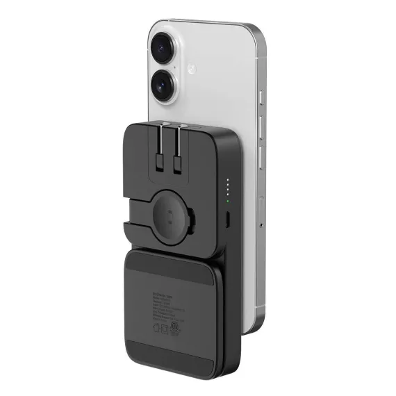 EH60K is the ultimate wireless charging solution for Apple users. This 6000mAh powerbank delivers up to 36 hours of power, supporting Qi2 15W wireless for iPhone, 5W for AirPods, and a built-in Apple Watch charger. It functions as a magnetic stand and includes a USB-C port and integrated wall prongs for full flexibility.
