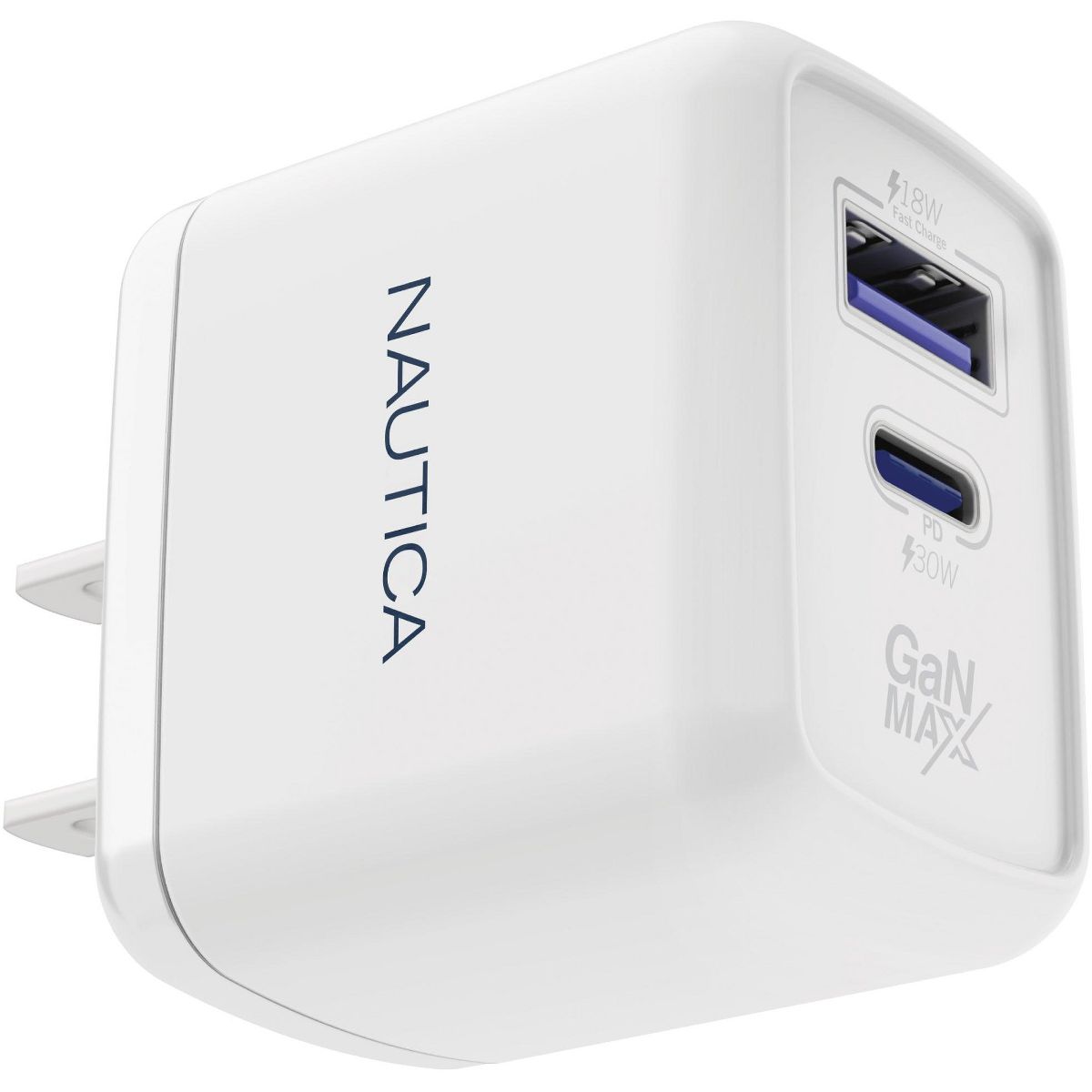 Nautica CH130 Charger - Fast Charging 30W PD USB-C / USB-A QC3.0 Dual Port Wall Charger for iPhone 16/15, Galaxy, Pixel, Compatible with MagSafe