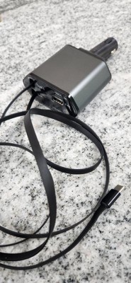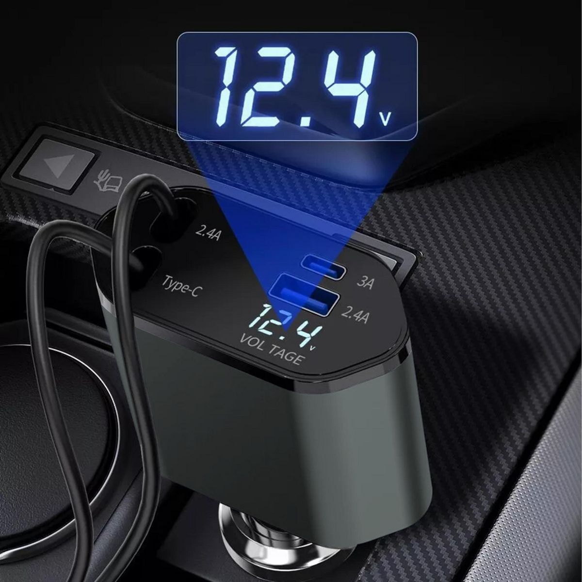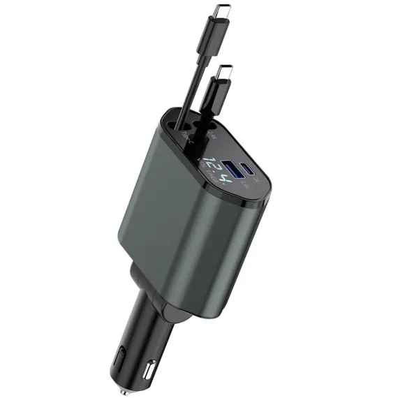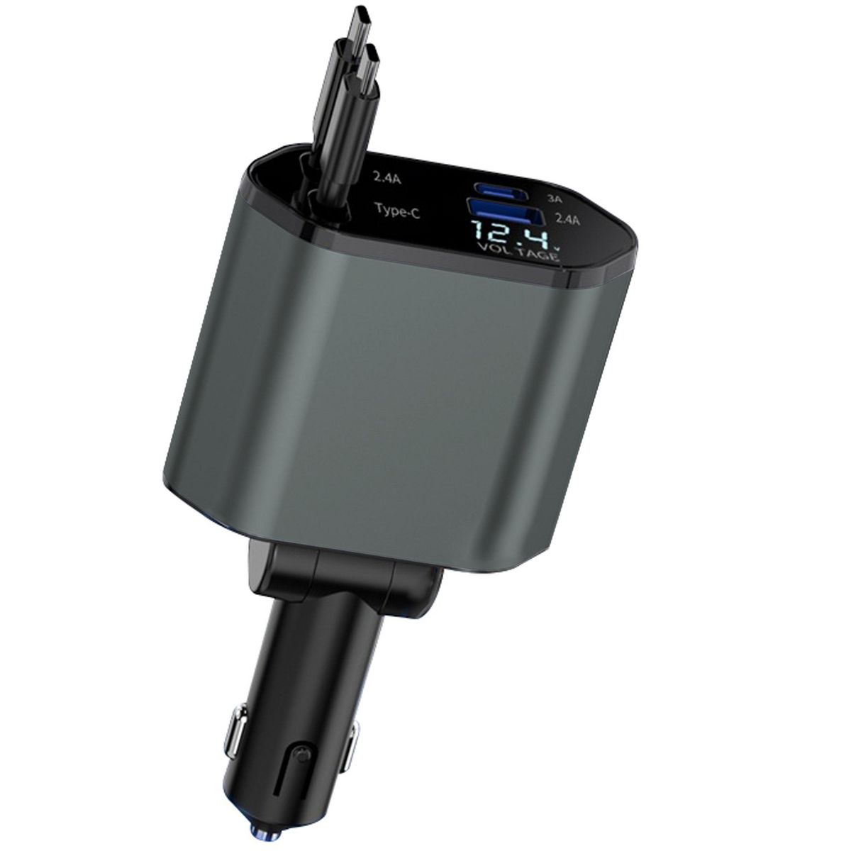 North 4-in-1 Retractable Car Charger with 2 USB-C Cables and Dual USB Ports
