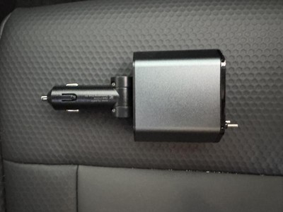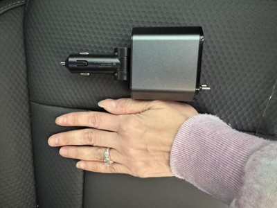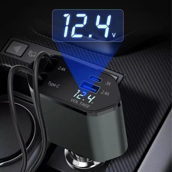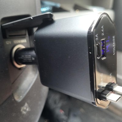 Stay powered on the go with the North 4-in-1 Retractable Car Charger, with 2 built-in USB-C cables and 2 charging ports. This compact charger features two 32 inch retractable USB-C cables, 1 USB-A port and 1 USB-C port. Easily charge multiple devices simultaneously without the hassle of tangled cords. The 180° rotatable head allows you to find the perfect angle. With fast-charging capabilities and built-in safety features, you can trust that your devices will charge efficiently and securely. Its sleek and durable construction fits seamlessly into any standard 12-24V car cigarette lighter, making it the perfect travel companion.
