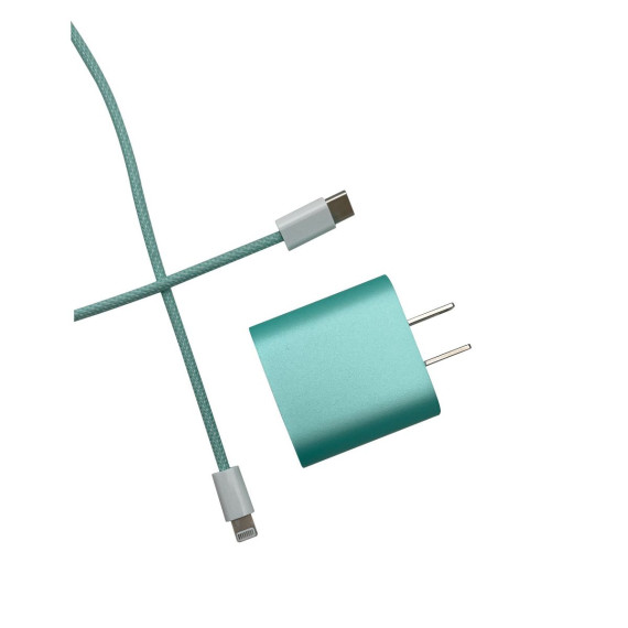Olivia Pratt Mint Solid Color Wall Charger 20W USB-C Power Adapter with USB-C to Lightning 3.3ft Nylon Cable
