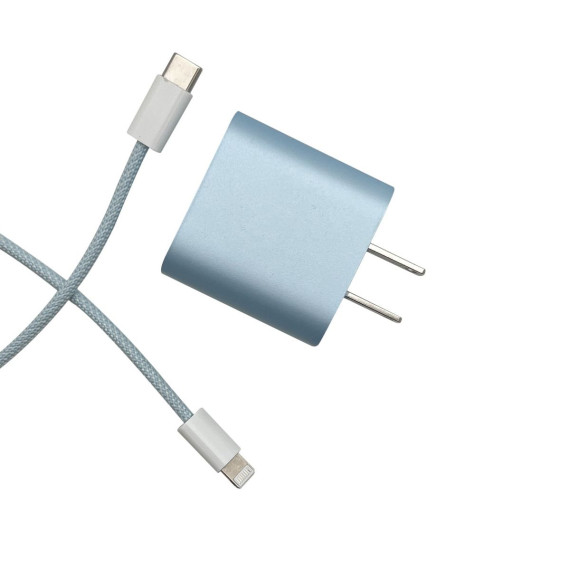 Olivia Pratt Mint Solid Color Wall Charger 20W USB-C Power Adapter with USB-C to Lightning 3.3ft Nylon Cable
