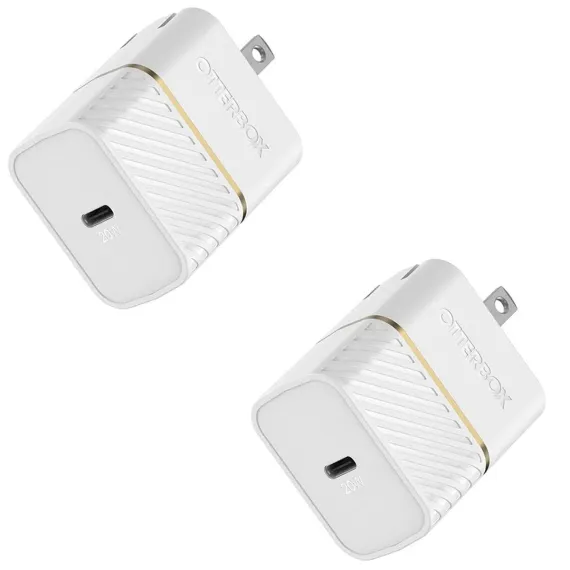 PRODUCT OVERVIEW: OtterBox Fast Charge USBWall Chargersare engineered rugged and built to outlast. Featuring a smart and compact design, this 20W wall charger is drop-tested and wrapped in a tough exterior for years of use. Thoughtfully designed with industry-leading mobile expertise and proven quality. KEY FEATURES: **Includes Two Wall Chargers** Works with Apple, Samsung, LG, Google, and other smartphone brands. Fast and built to last, enjoy up to 58% charge to your smartphone in 30 minutes* Passes rigorous tests for safe, smart, and efficient home charging Great for the new iPhone, iPad, and iPad mini. These devices can use up to 20W of power. Wall Charger features foldable prongs for a compact design Wall Charger is drop tested and wrapped in a tough exterior for ultra-durability Designed to work flawlessly with your favorite OtterBox cable Supports USB Power Delivery fast charging technology