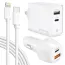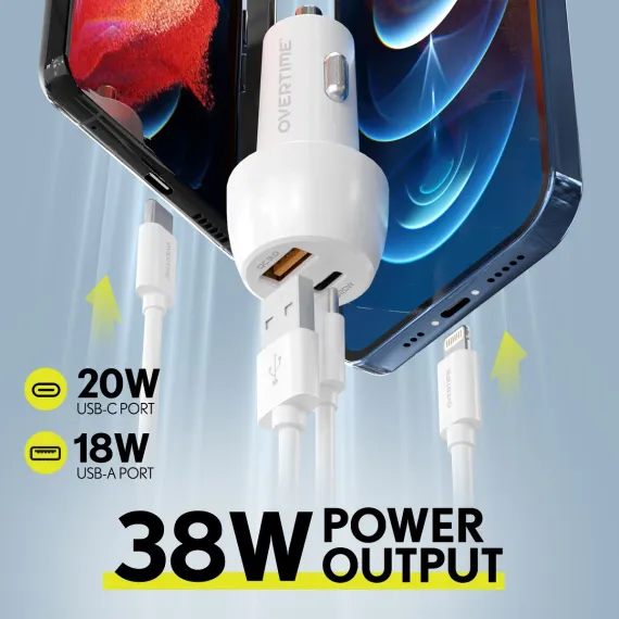 Overtime Wall and Car Charger Kit with Apple MFI Certified 6ft USBC-to-Lightning Charging Cable for Apple iPhone/iPad Lightning Devices, White