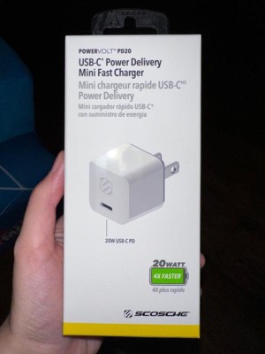 The Scosche HPDC20WT-SP PowerVolt 20W Mini Cube USB-C Fast Charger Power Delivery 3.0 is the ultimate solution for charging today's USB Type-C devices which means less time tethered to your charger and more mobility for you. The tiny, compact size is perfect for travel or storing inside your pocket, purse or backpack. Certified USB Fast Charger Power Delivery 3.0 technology safely charges your compatible devices up to 50% capacity in about 30 minutes. It’s charging speed is up to 4 times faster than a standard 5W USB Wall Charger. The built-in circuitry protects your device from over charging and overheating and is completely safe for less powerful devices. Use the 20-Watt USB Type-C port to charge your Switch or one of today's latest and greatest smartphones or tablets using only one wall outlet. Compatible with 100-240VAC. We recommend using a fast charge compatible USB-C cable to achieve the fastest charge rates.