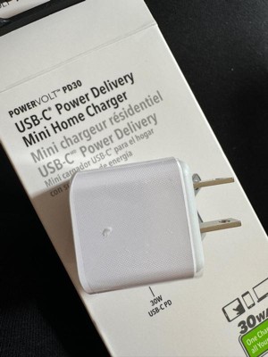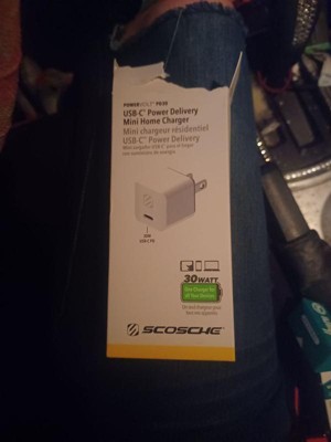 PowerVolt Power Delivery 30W Home Fast Wall Charger - White: Scosche USB-C Quick Charge, Apple Lightning Connector, Surge Protection