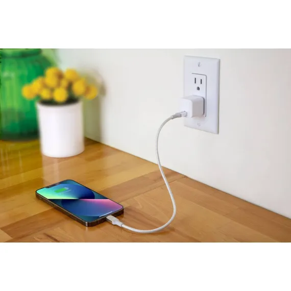 The Scosche HPDC30MWT PowerVolt 30W Mini Cube USB-C Fast Charger Power Delivery 3.0 with PPS compatibility is the ultimate solution for charging today's USB Type-C and PPS compatible devices, which means less time tethered to your charger and more mobility for you. The tiny, compact size is perfect for travel or storing inside your pocket, purse or backpack. Certified USB Fast Charger Power Delivery 3.0 technology safely charges your compatible devices up to 50% capacity in about 30 minutes. It’s charging speed is up to 4 times faster than a standard 5W USB Wall Charger. The built-in circuitry protects your device from over charging and overheating and is completely safe for less powerful devices. Use the 30-Watt USB Type-C port to charge your PPS compatible device, 30W Macbook, 30W small laptop, or one of today's latest and greatest Smartphones or Tablets using only one wall outlet. Compatible with 100-240VAC. We recommend using a fast charge compatible USB-C cable to achieve the fastest charge rates. It’s backed by Scosche’s Lifetime Tech Support and a 3-year warranty.