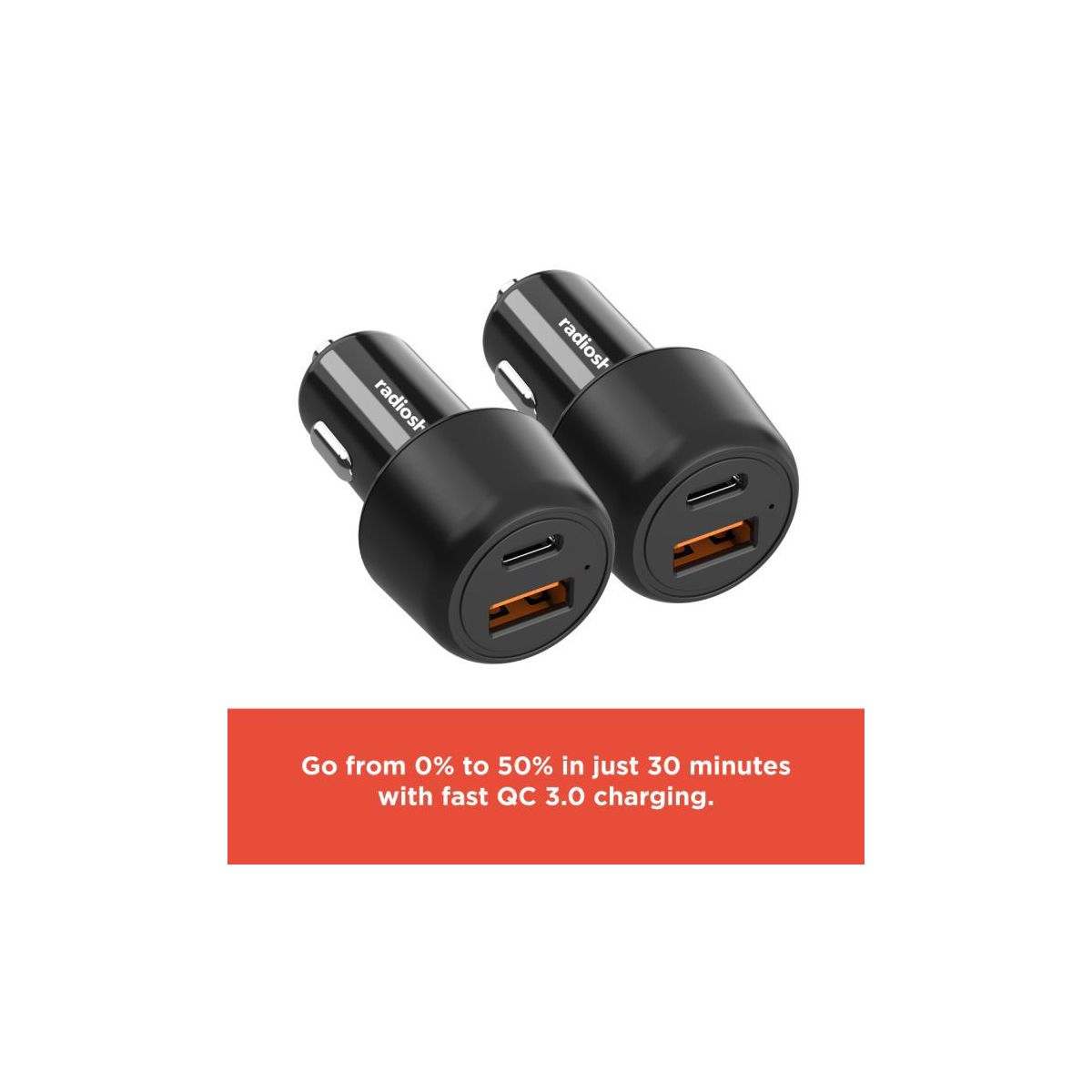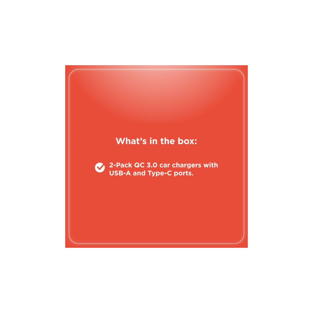 RadioShack 2-Pack Car Charger with Quick Charge 3.0, Dual Ports (USB-A + Type-C), Fast On-The-Go Charging 2733360