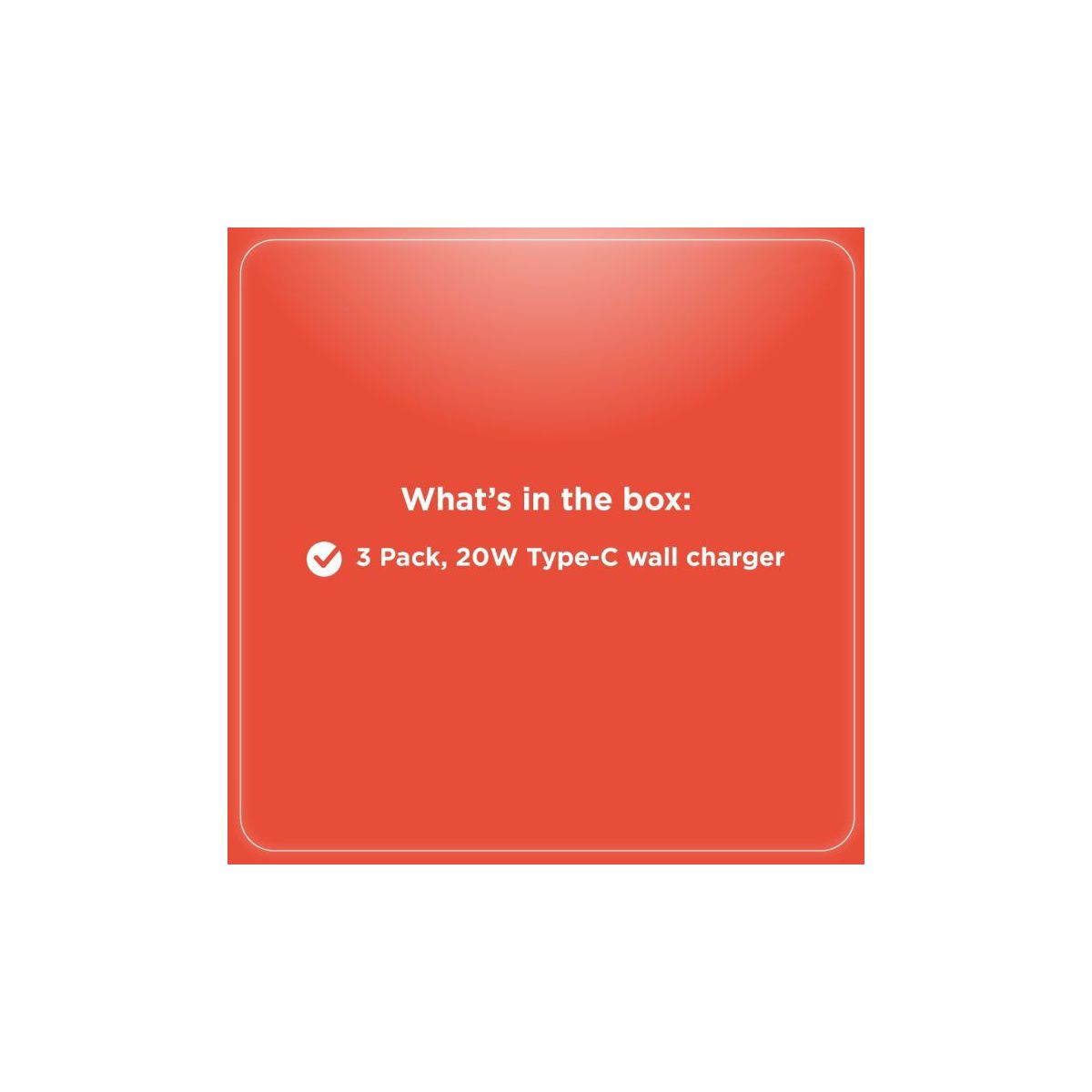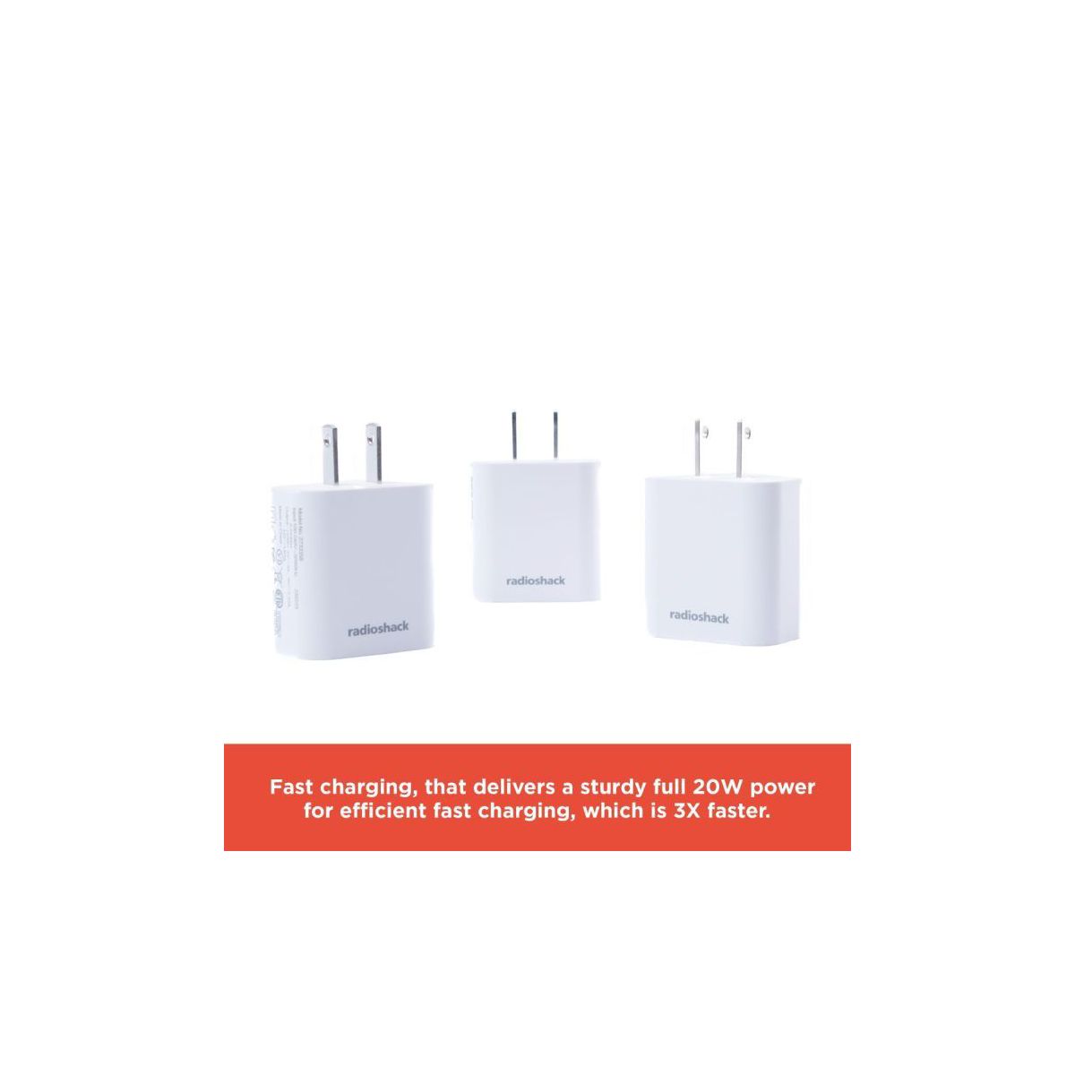 RadioShack 3-Pack 20W USB-C Wall Charger, Fast Charging, Compact Design 2733358
