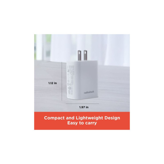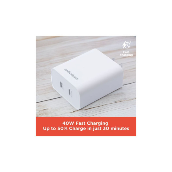 RadioShack 40W Dual USB-C Wall Charger, 2 Ports, Fast Charging, Compact Design 2605164