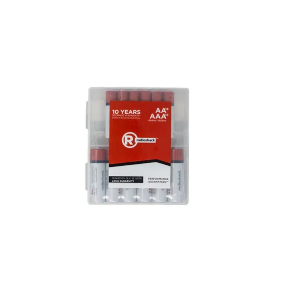 RadioShack Alkaline Batteries With 10 Year Shelf Life (12 AA and 12 AAA 24 Pack) With Hard Reusable Plastic Case For Storage 2309311