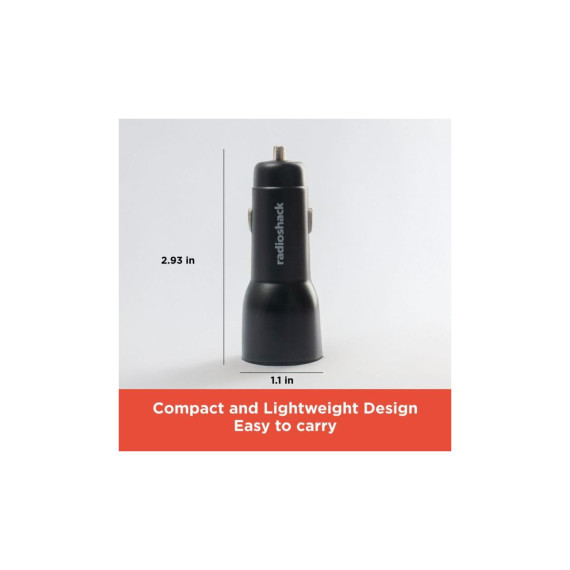 RadioShack Dual Car Fast Charger,1 USB QC 3.0 Port and 1 Type-C Port, Fast Charging for Smartphones, Tablets, and USB-C Devices on the Go