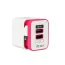 REIKO 2 AMP DUAL PORT PORTABLE TRAVEL ADAPTER CHARGER IN HOT PINK