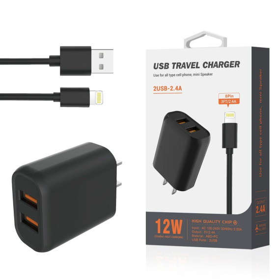 "Introducing the Reiko 8-PIN Portable Travel Home Charger with Built-In Cable in Black, your perfect charging companion on the go! This sleek and compact charger is designed to provide a reliable and efficient charging solution for your devices. With its built-in cable and versatile design, it's a must-have accessory for all your charging needs.The Reiko 8-PIN Portable Travel Home Charger features a durable construction and a sleek black finish that complements any style. Its compact size makes it ideal for travel, allowing you to conveniently charge your devices wherever you go. Whether you're at home, in the office, or on the road, this charger ensures you never run out of power.This charger is specifically designed with an 8-PIN connector, making it compatible with a wide range of Apple devices, including iPhones, iPads, and iPods. The built-in cable eliminates the need for carrying around extra cables, keeping your charging setup neat and tangle-free. Simply plug it into a wall outlet or power strip, connect your device, and enjoy fast and reliable charging."