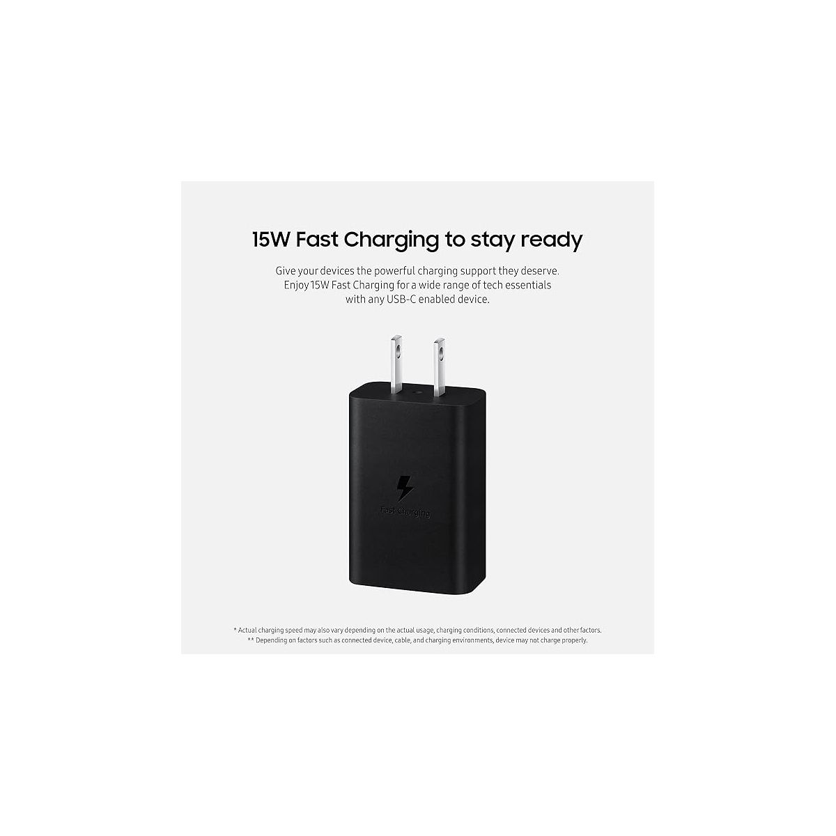 SAMSUNG 15W Wall Charger Type C (USB-C Cable Included), Black