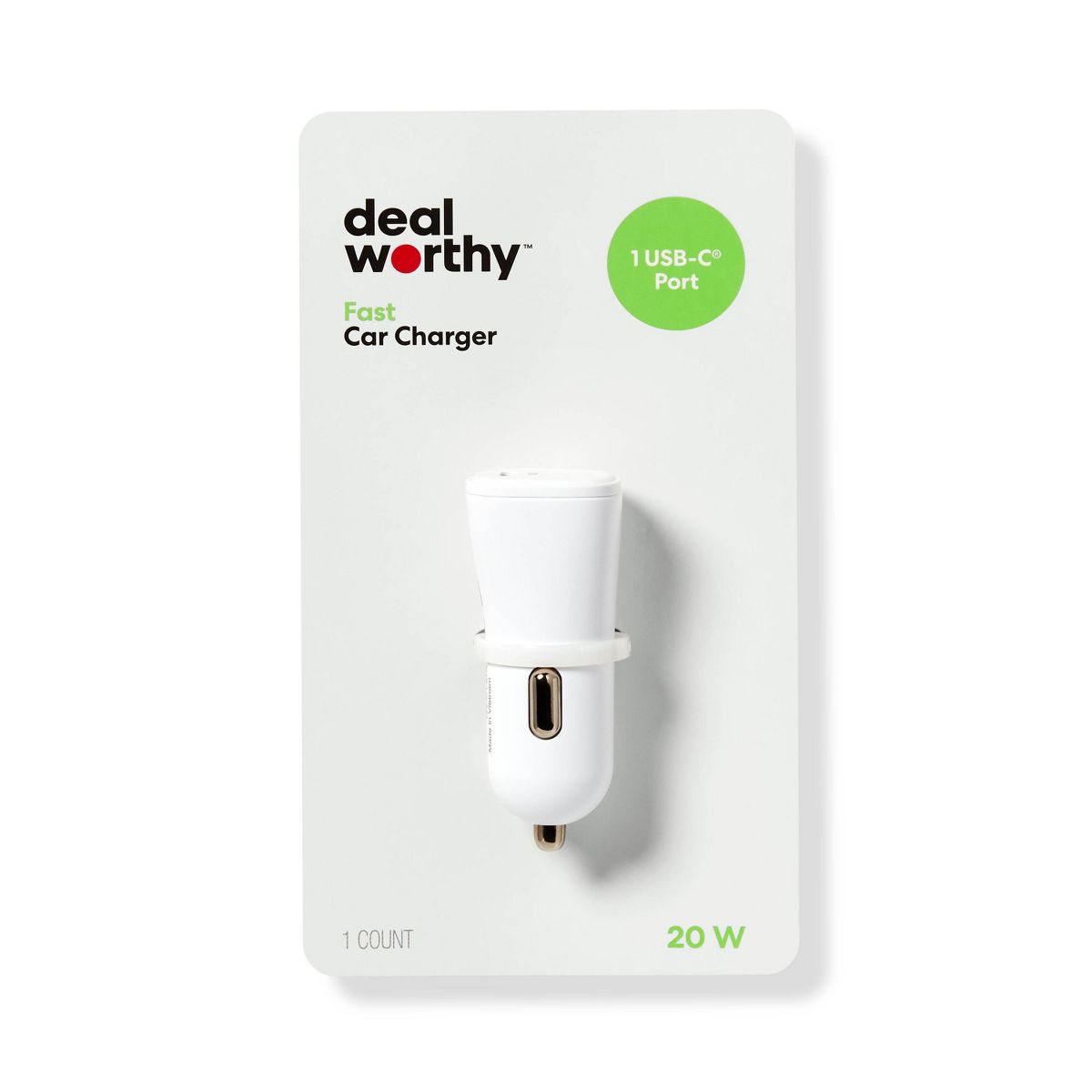Single Port 20W USB-C Car Charger - dealworthy™ White: 3A Fast Charging Adapter