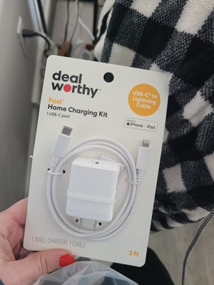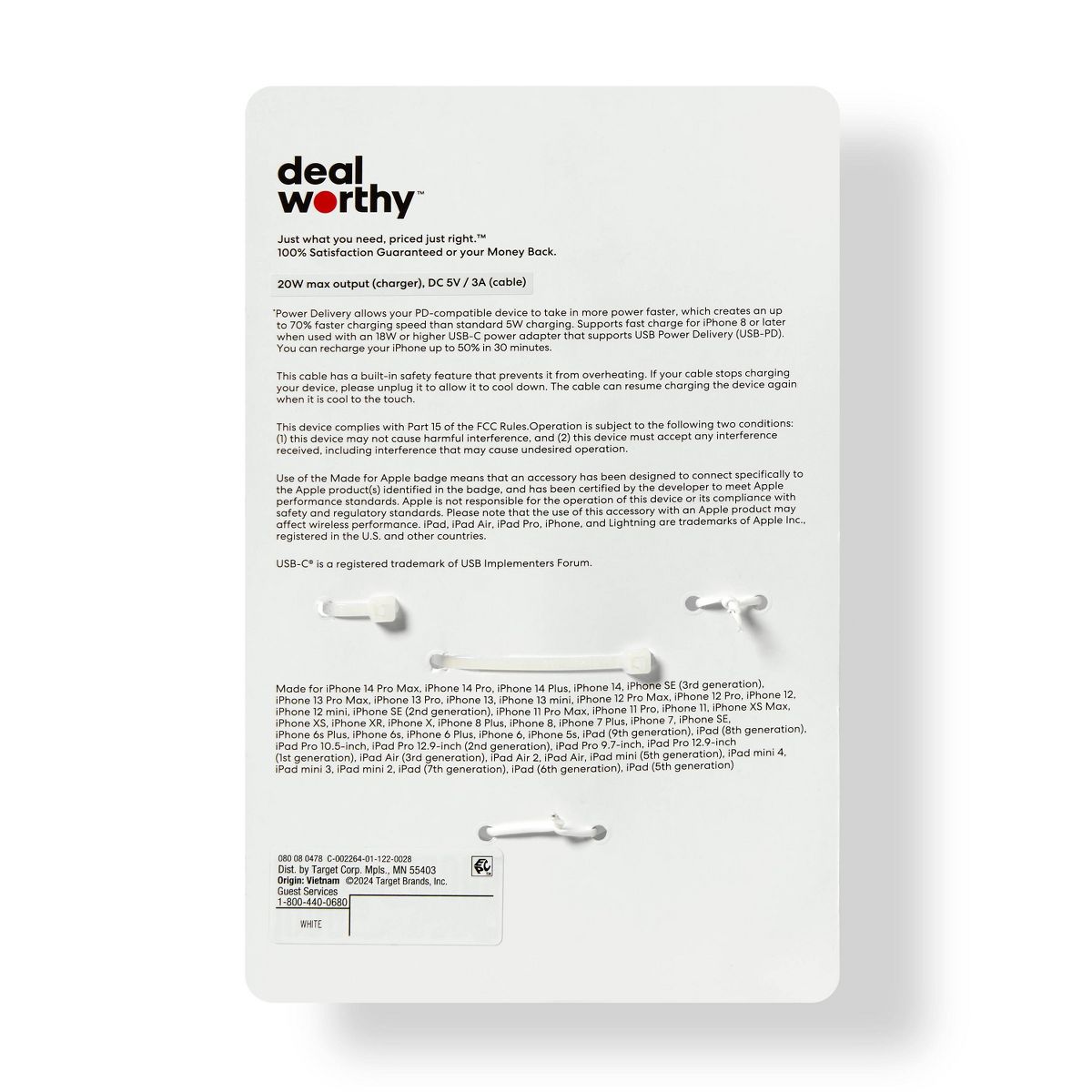 Single Port 20W USB-C Home Charger with 3' Lightning to USB-C Cable - dealworthy™ White