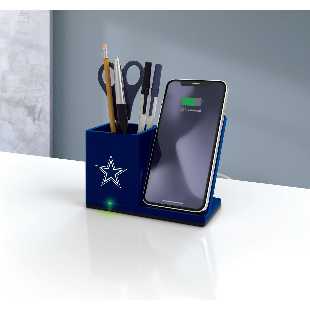 The SOAR Wireless Cell Phone Charger and Desktop Organizer is the perfect desk accessory for the ultimate sports fan! Perfect for home or office use. The 10W wireless charging power allows for quick desktop charging and is powerful enough to charge through your case. Helps keep your desk neat while making sure everyone knows who you’re routing for at the big game. Officially licensed NFL product with a 1-year manufacturer warranty.