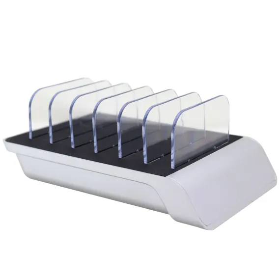This intelligent charging dock allows you to save time and space efficiently and in style. Powerful and smart, it'll distribute the appropriate current to up to 6 devices for fast and effective charge. Its small and sleek design with brackets make this charging station a great companion for organizing your space.