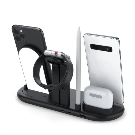 Thanks to its unique magnetic contacts, this 7 in 1 wireless charging stand and dock can be combined to charge multiple devices with just one cable, or they can be detached for separate use. Easy to carry and charge for AppleWatch/ AirPods/Pencil when traveling.