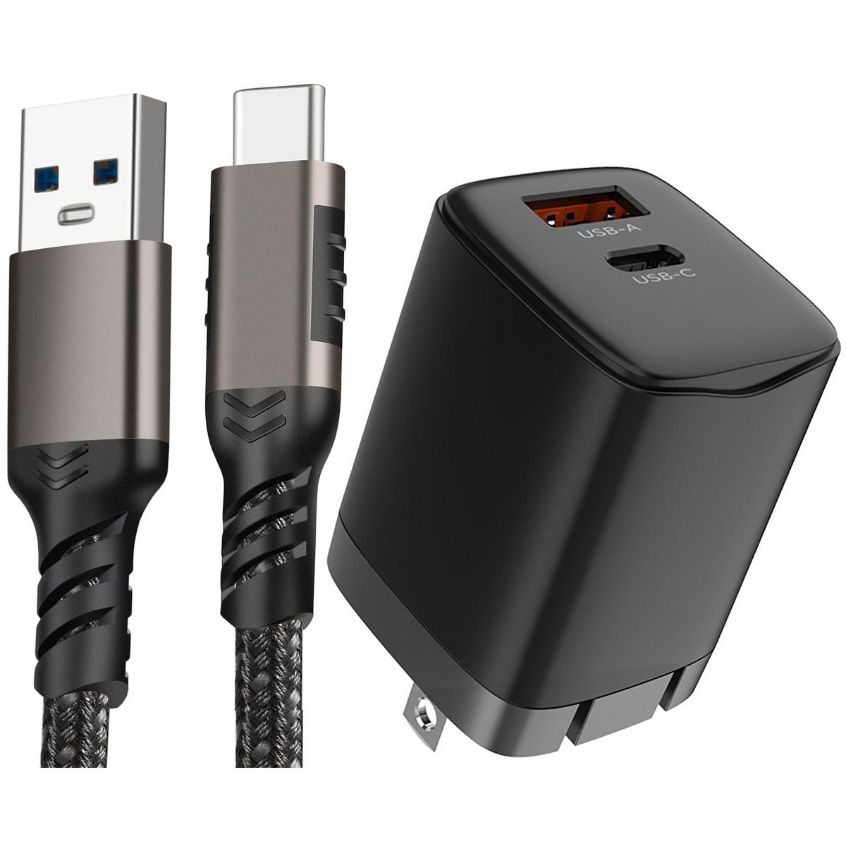 USB-C Phone Charger Combination, Nakedcellphone 20W Dual Port Wall Charger and Rugged Cable (3.2 Foot Cord) for Cell Phone, iPhone, Tablet