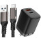 USB-C Phone Charger Combination, Nakedcellphone 20W Dual Port Wall Charger and Rugged Cable (Long 6.5 Foot Cord) for Cell Phone, iPhone, Tablet