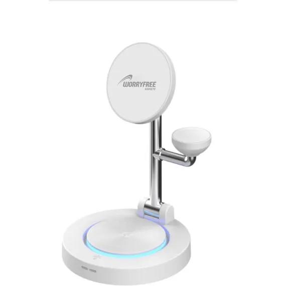 Worryfree Gadgets 3-in-1 Wireless Charging Station, Apple Watch Charger, 15W MagSafe Charger Stand for iPhone, Charge Multiple Devices, 33W USB-C