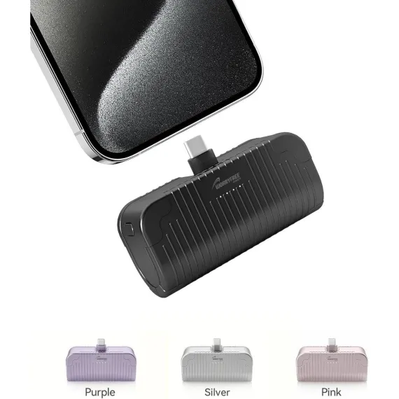 Worryfree Gadgets 5000mAh 3.7V 18.5Wh Mini Power Bank, PD20 Fast Charger, Black