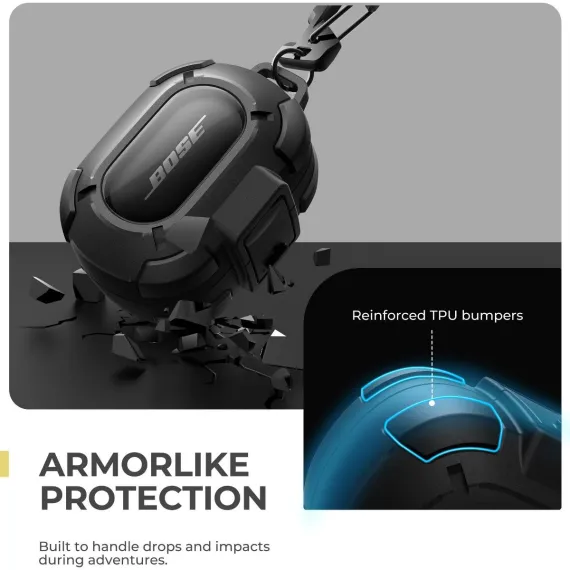 Dexnor for Bose QuietComfort Earbuds Protective Case with Drop-Proof Lock, Shockproof Rugged Bumper Cover with Carabiner & Keyring Black