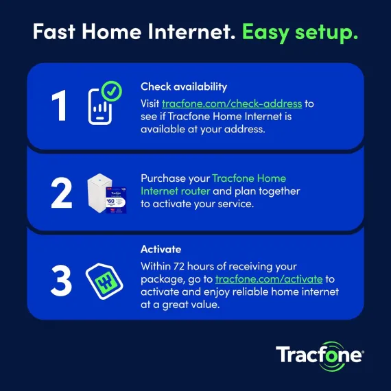 Check eligibility on our website and confirm coverage for your area. IMPORTANT: Like any internet service, this product may not be available at all addresses. Please first visit tracfone.com/check-address and verify your coverage availability before purchasing.