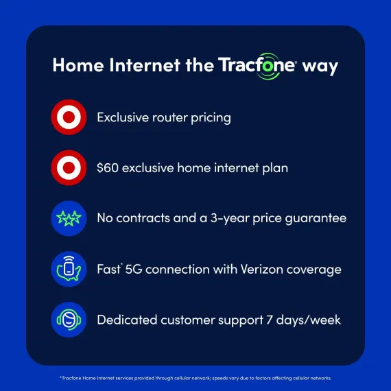 *Tracfone Home Internet services provided through cellular network; speeds vary due to factors affecting cellular networks.