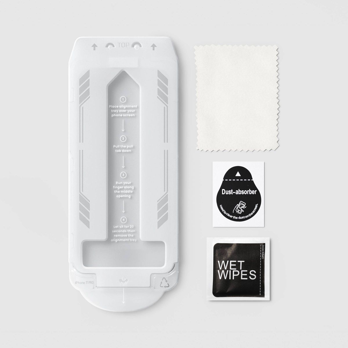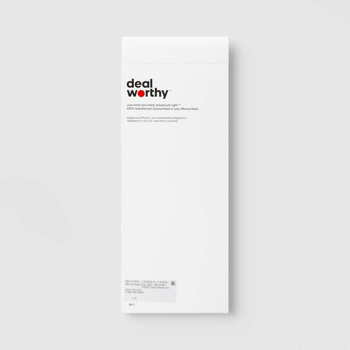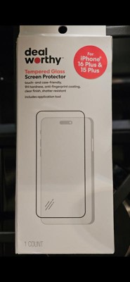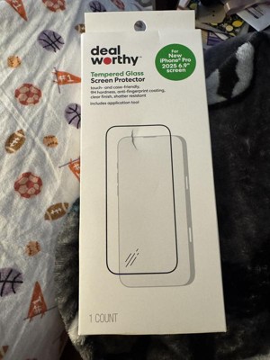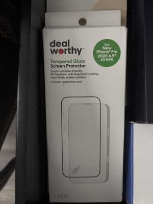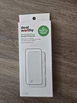 The Apple iPhone 17 Pro Max Screen Protector - dealworthy™ Clear is designed for the Apple iPhone 17 Pro Max, offering shatter-resistant tempered glass protection. It features an anti-fingerprint coating to maintain screen clarity and cleanliness. With precise dimensions, it ensures a snug fit, measuring 6 inches in length, 3 inches in width, and 0.01 inches in thickness. This single-pack protector provides essential defense against scratches and impacts, preserving the device's display quality.
