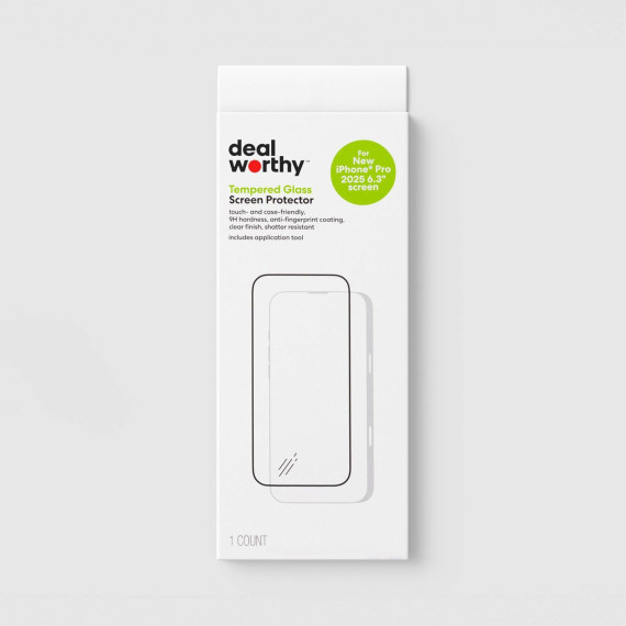 The Apple iPhone 17 Pro Screen Protector - dealworthy™ Clear offers robust protection with its shatter-resistant tempered glass material. Designed to maintain screen clarity, it features an anti-fingerprint coating to keep your display clean. With precise dimensions of 6 inches in length and 3 inches in width, this protector ensures a snug fit. Its ultra-thin 0.01 thickness preserves touch sensitivity, making it an essential accessory for safeguarding your device.