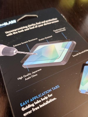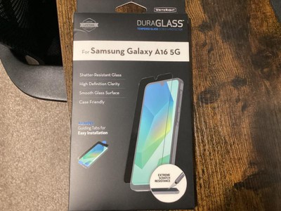 Protect your device screen with DuraGlass tempered glass screen protector with quick installation tabs for your Samsung Galaxy A16 5G device. DuraGlass provides superior protection for your device screen and is designed to fit perfectly on your device. Using a high-quality, shatter-resistant tempered glass, this screen protector provides high definition clarity and a smooth, touch-friendly surface, so you will forget it is even there. The glass has an anti-fingerprint coating to limit unwanted smudging and fingerprints. The screen protector is also case friendly allowing you to use it without compromise. The DuraGlass screen protector includes alignment installation tabs for an easy error-free installation. Some of the key features include shatter-resistant 9H glass, high definition clarity, smooth glass surface, bubble-free, case friendly, alignment tabs for installation ease and smooth beveled edges.