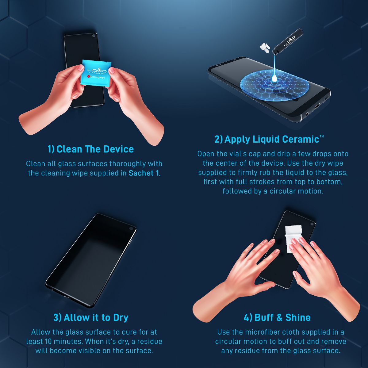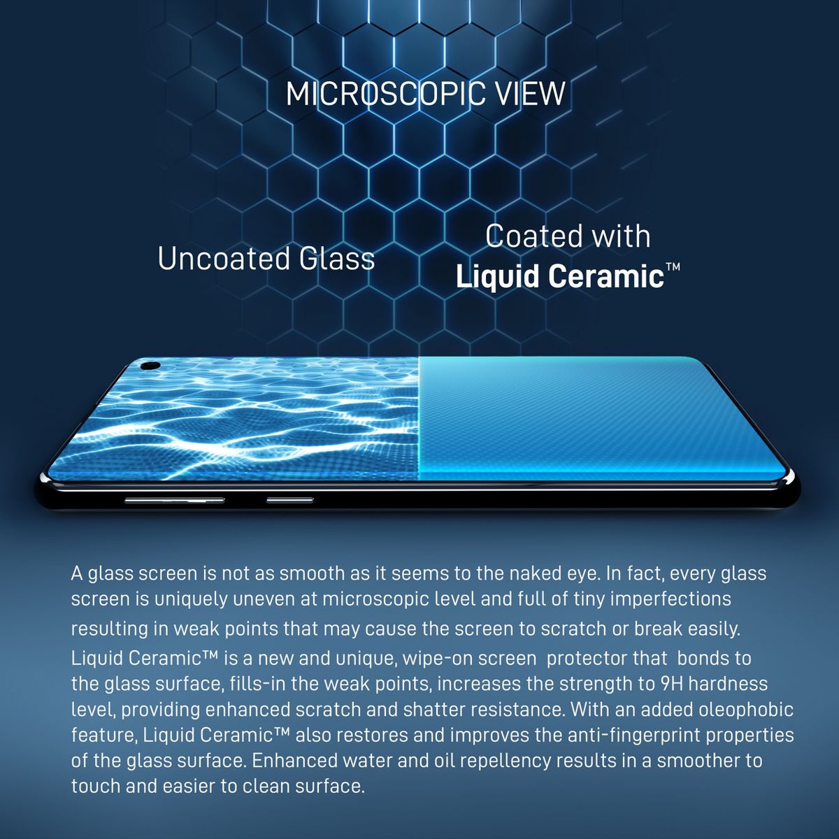 Liquid Ceramic is a new and unique, wipe-on screen protector that bonds to the glass of your device offering enhanced scratch and shatter resistance with an added oleophobic feature that restores and improves the anti-fingerprint properties of the glass surface by improving it’s water and oil repellency resulting in smoother touch and easier to clean surface. Adds a super thin layer of invisible glass, increases its strength to 9 H hardness level, and offers enhanced fingerprint, scratch and impact resistance. What makes Liquid Ceramic different than traditional liquid screen protectors, besides it’s improved scratch and shatter resistance is, it’s ability to restore the screen’s original coating and improving it beyond new for an excellent and high clarity screen that is smooth to touch and extremely responsive. Liquid Ceramic screen protector protects your device's screen against regular scratches that may happen with regular use. It will NOT make your screen completely shatter-proof or scratch-proof. Your screen can still get scratched or broken with a liquid glass screen protector (it does not fix or repair exiting crack or scratches).