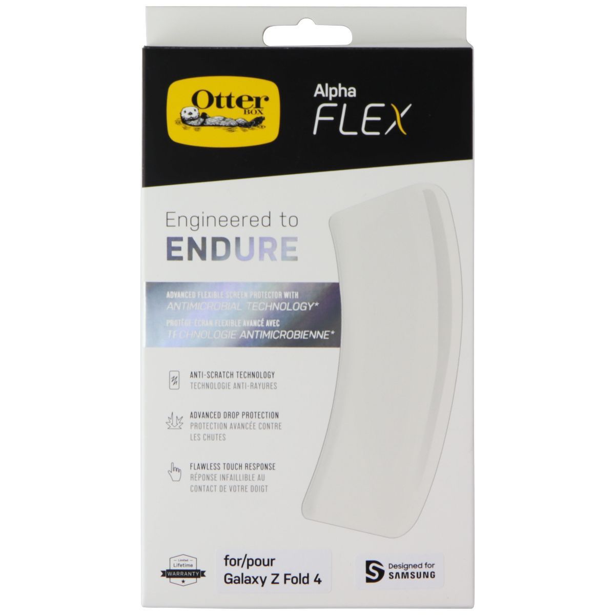 Alpha Flex Screen Protector for Galaxy Z Fold4 combines a flexible polymer layer with superior glass-like clarity for scratch and drop defense up to 8 ft. It maintains original touch sensitivity and fold functionality. Oleophobic coating repels oils, and the EZ apply tool ensures bubble-free edge-to-edge installation. Ideal for preserving foldable screens without bulk.
