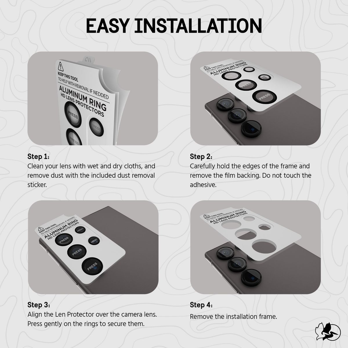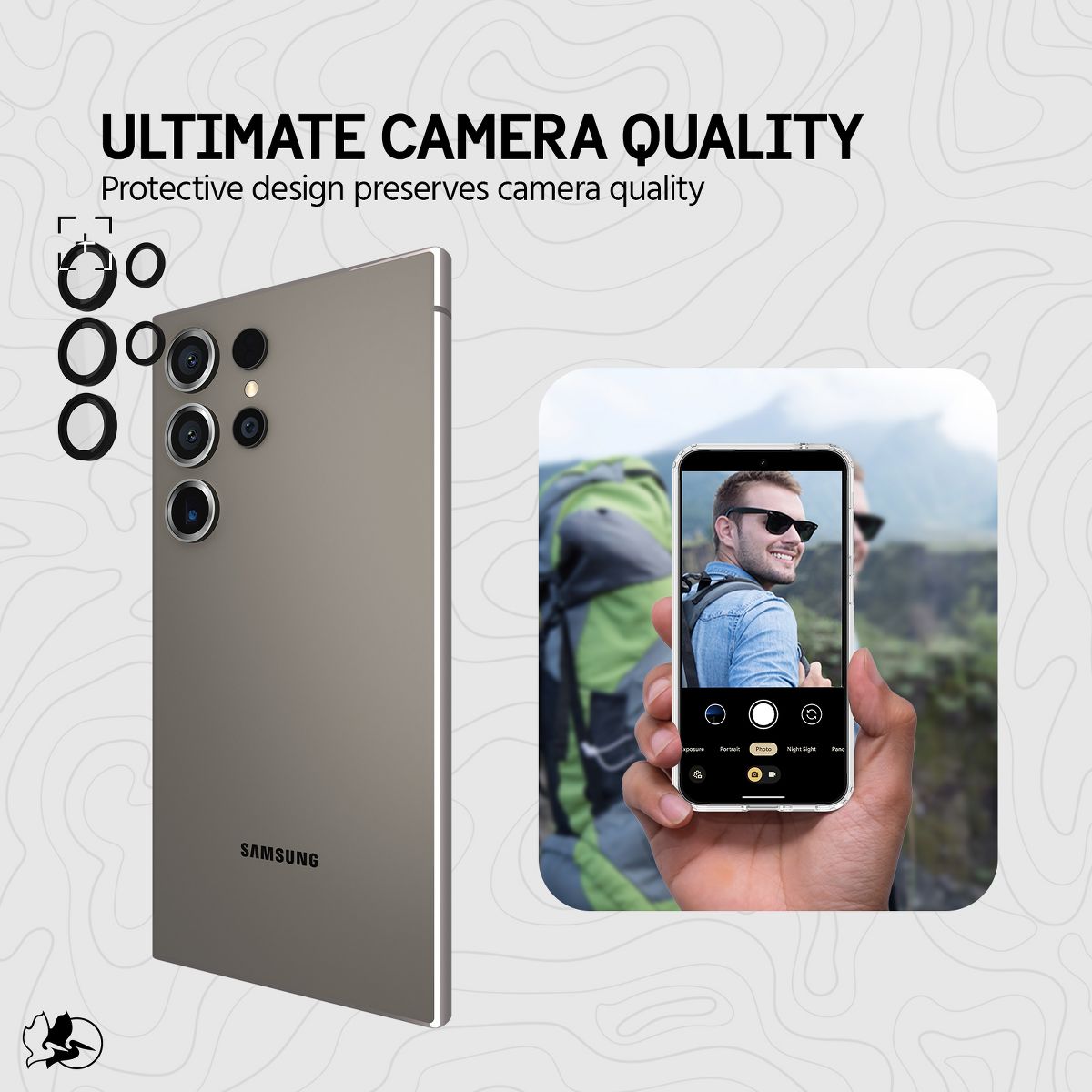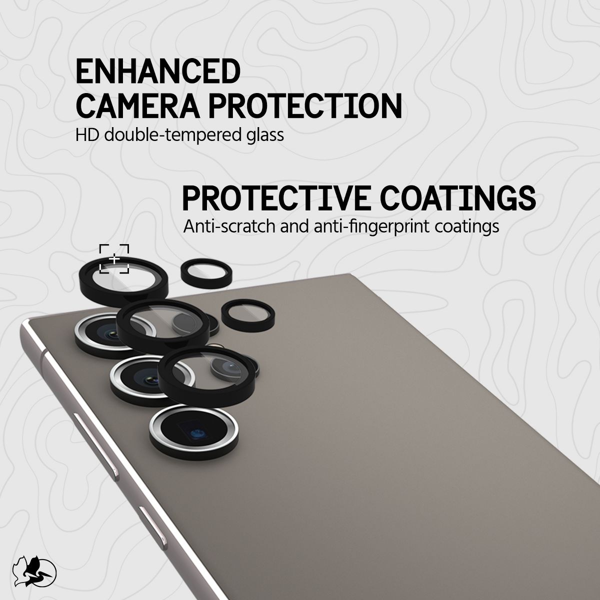 Defend your camera lens from impact with the Pelican Aluminum Ring HD Lens Protector. Equipped with a scratch proof coating, this easy-to-install lens protector maintains image clarity, while the double-tempered glass ensures your entire lens is covered and protected. The lens protectors have a one year warranty. Compatible with Galaxy S24 Ultra.