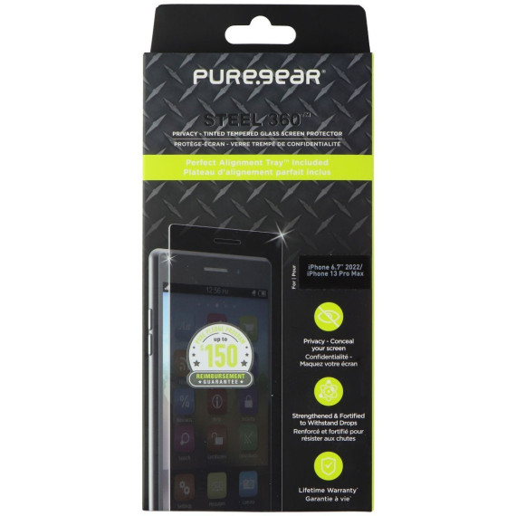 PureGear Steel 360 Privacy Glass Protector for iPhone 14 Plus/13 Pro Max