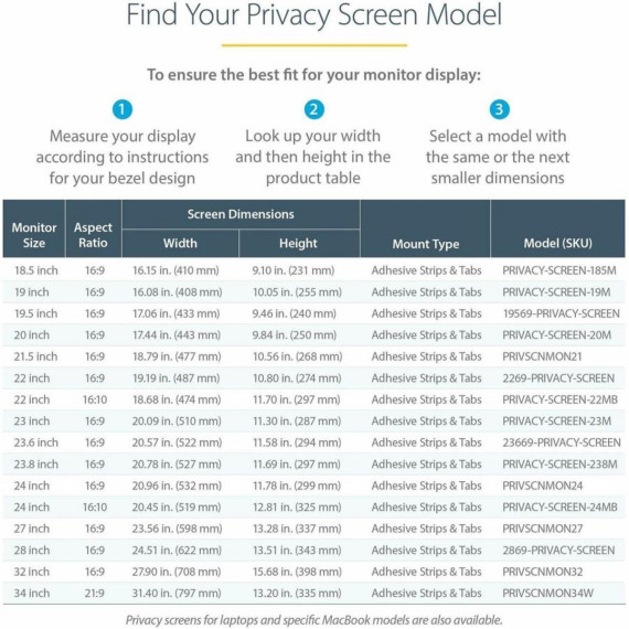 StarTech Monitor Privacy Screen for 22" Display Widescreen Computer Monitor