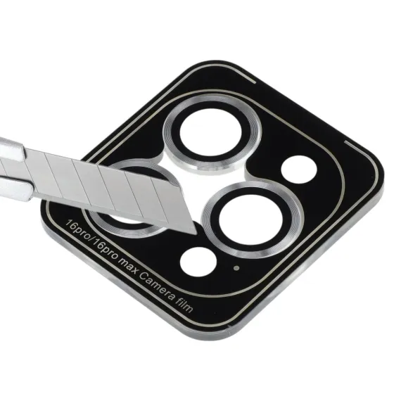 Unique Bargains Lens Cover 5H Glossy Camera Protector for IPhone16 Pro/16 Pro Max with Alignment Tool & CD Pattern 1Pcs Silver Tone