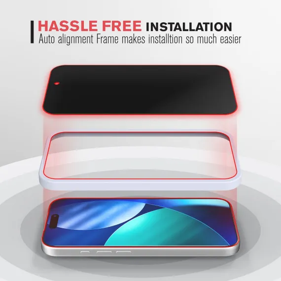 With the included alignment frame, the screen protector installation process is so much easier and accurately applied to the phone screen without any bubbles. With just one touch, the anti-static self-adhesive layer of the tempered glass screen protector ensures a quick, easy and bubble-free installation.