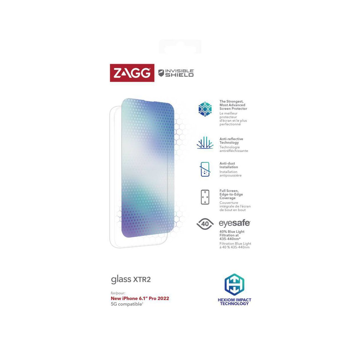 Glass XTR2 is made with Hexiom impact technology making it 10% stronger than its predecessor. This seamless, edge-to-edge screen protector also has an enhanced Eyesafe blue light filter and anti-reflective technology for better optics. Its ultra-smooth surface allows for frictionless swiping and maximum touch sensitivity.