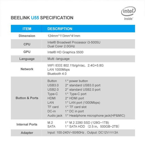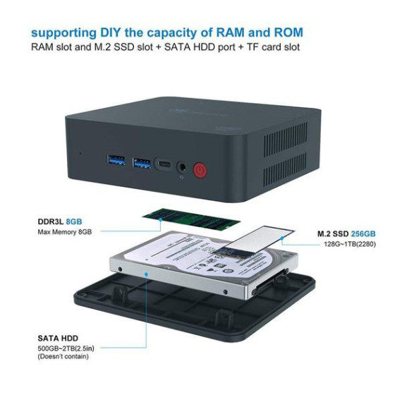Make sure this fitsby entering your model number. 【 AP35 Office Mini PC small and portable】 115*102*45mm , with 4 USB 3.0 ports, 1 headphone jack, 1 * power button, 1 * 1000M LAN port, 2 * HDMI 1.4b port, 1 * 12V DC port, and 1 * TF card slot port, incl. VESA mount 【Pre-installation Windows 10 64-bit home-based system, latest Intel Apollo Lake J3355 CPU and Intel UHD Graphics 500】: AP35 built in latest Intel Apollo Lake J3355 (2 Core 2 threads cache 2M, 2GHZ up to 2.5GHz), with Intel HD graphics 500, 2 * HDMI 1.4b port, 4K 30HZ. You can extend the Mini PC to dual 4K monitor or 4K TV, enjoy ultra-real 4K video. 【Large Memory 4GB Ram LPDDR4 64GB eMMC】 DDR4 4GB Memory and 64GB eMMC , support TF Card,SATA SSD and HDD Capacity Expansion. (tf card,HDD and SSD are not included), loads your favorite shows and movies as you like, with smooth and responsive navigation and apps that start fast. 【2.4GHZ + 5.8GHZ dual band wifi and 1000Mb / s Lan】: support 2.4G + 5.8G dual band WiFi, 1000Mb / s Lan. Exceptional connectivity capabilities. Open the web page in seconds, quickly download the file, watch the video without buffering, do not play the game. 【New Cooling Method and 10W Engery Saving】 Good heat dissipation design to ensure high performance operation at high temperature when CPU usage 100% . 10W Low power consumption and environmental protection.