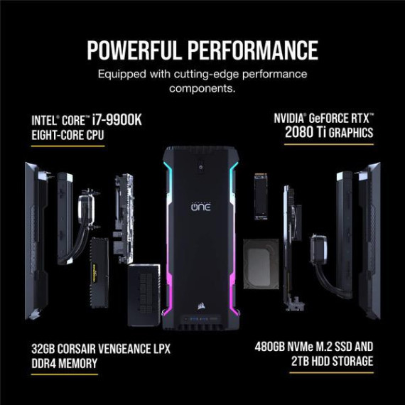 Make sure this fitsby entering your model number. Intel Core i9-9900K eight-core processor, NVIDIA GeForce RTX 2080 Ti graphics and award-winning CORSAIR 32GB DDR4 memory Built-in RGB light pipes and powerful CORSAIR iCUE software allow you to personalize your system’s look and instantly sync lighting profiles across all your CORSAIR iCUE compatible products Patented assisted convection liquid cooling system for higher clock speeds, lower temperatures and minimal noise Experience stunning multi-display immersion with support for up to three 4K displays with NVIDIA G-SYNC, VR and HDR Front I/O panel equipped with two USB ports, a 3.5mm audio jack and a VR-ready HDMI port OS : Windows 10 Home