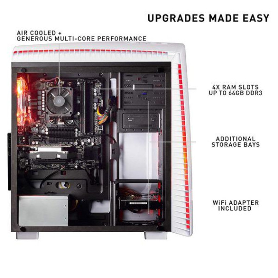 iBuyPower GTX 1050 TI Gaming Computer Desktop PC AM8270EX AMD FX 6300 3.5 GHz GTX 1050 Ti 4GB, 8GB DDR3, 1TB HDD 7200 RPM, Win 10 Home, 24x DVD-RW, White