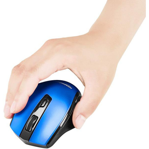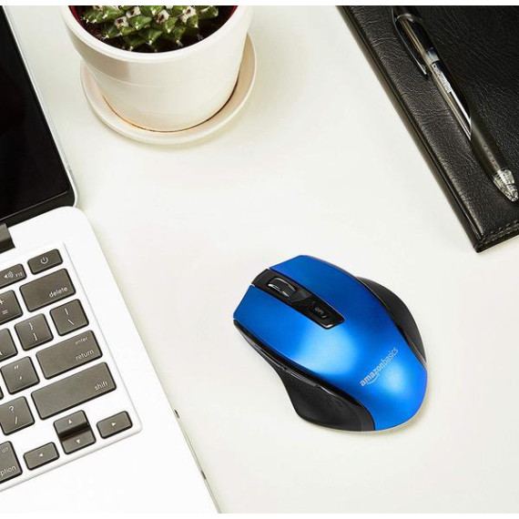 Make sure this fitsby entering your model number. Compact wireless mouse with adjustable DPI for preferred sensitivity (600, 1000, 1600, 2400, or 3600 DPI) Advanced optical sensor; works on most surfaces; clickable metallic scroll wheel; back/forward thumb buttons for easily navigating web pages 2.4 GHz wireless connection with a 33-foot range; uses AES-128 encryption for added security; this mouse uses a small USB receiver that can stay plugged into your computer without obstructing other ports Ergonomic shape with rubberized sides ensures a comfortable hold; compatible with Windows 7, 8, and 10; uses 1 AA battery (included); stylish Blue color Measures 4.1 by 2.9 by 1.5 inches; backed by an AmazonBasics 1-year limited warranty